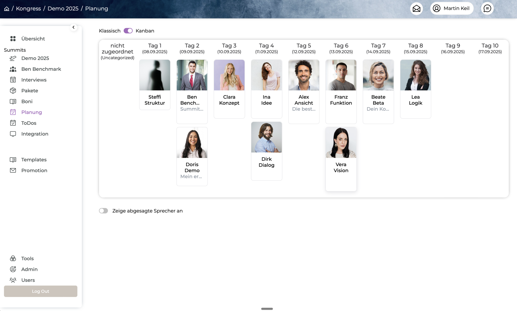 Das ist besonders dann hilfreich wenn du mehrere Kongresse betreust oder deinen nächsten Kongress bereits planst während dein aktueller noch läuft.