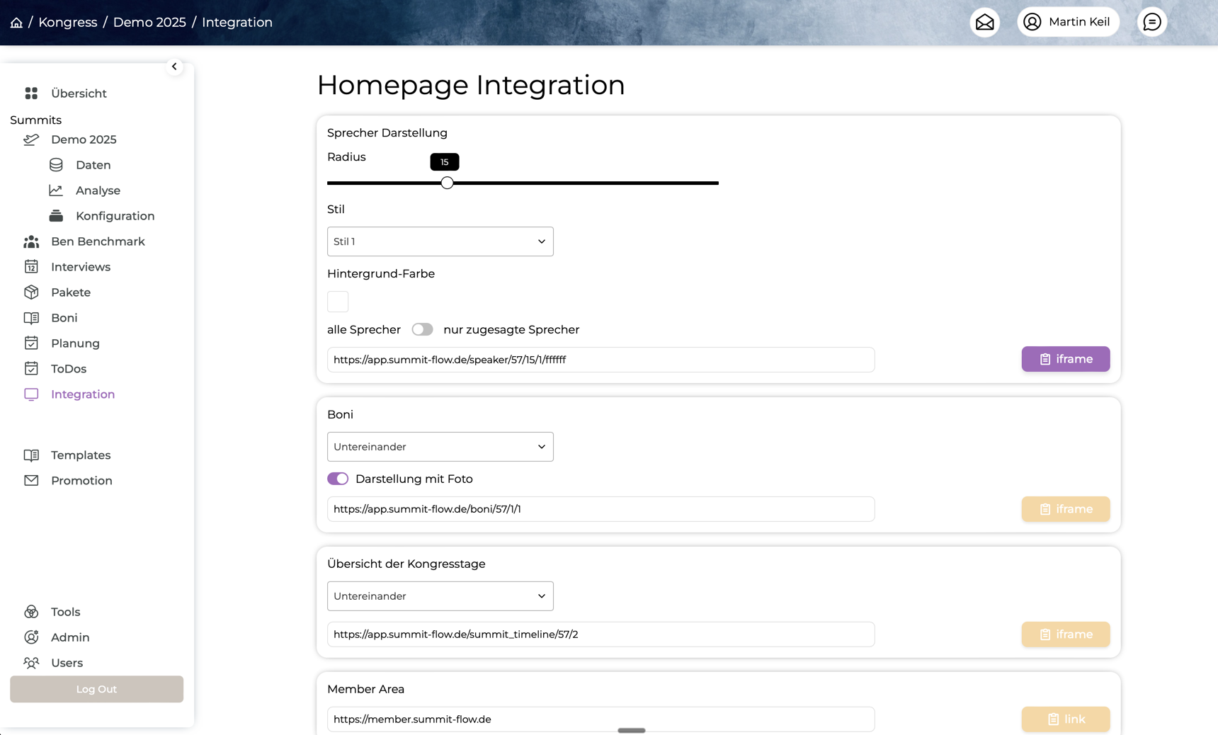 Jede Änderung in Summit-Flow wird dann ebenfalls auf der Landingpage dargestellt, du musst also keine Daten synchronisieren...alles passiert im Hintergrund automatisch.